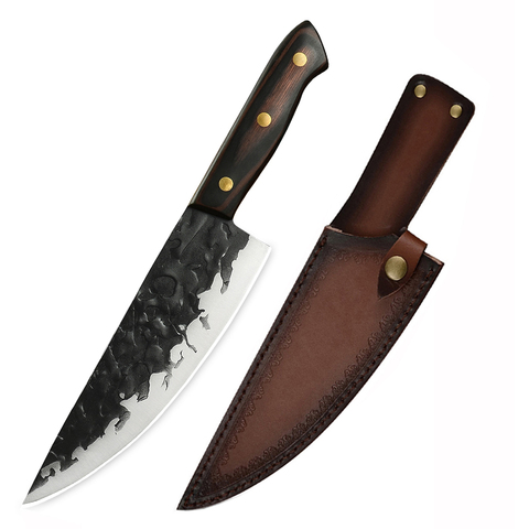 Coltelli da cucina professionali con finitura a martello Xingye manico in legno pieno Tang coltello da cuoco di fascia alta da cucina personalizzato da 8 pollici con guaina