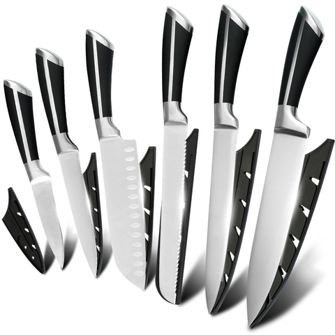 Coltello da cuoco Yangjiang con guaina per coltello in plastica manico nero Set di coltelli da cucina 6 pezzi