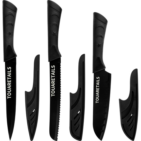 Tre pezzi coltello in un Set XYJ nero superficie lama affilato manico in plastica Chef Santotu cucina coltello Cutter per fetta di verdura