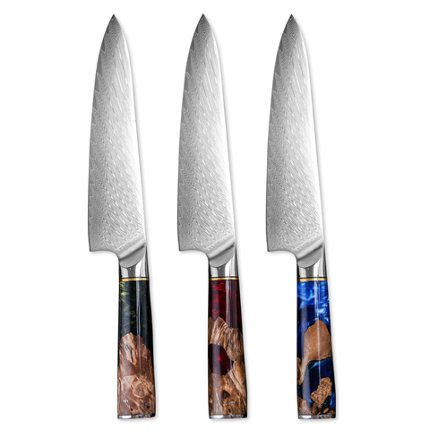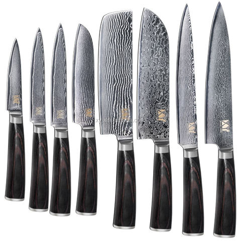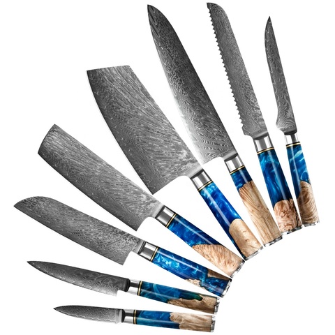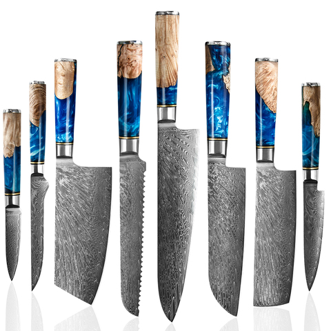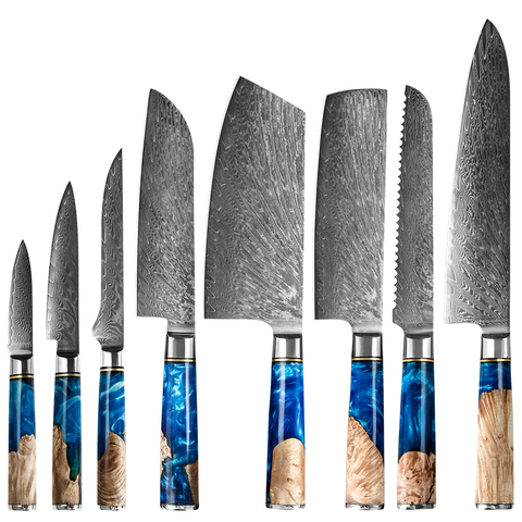 Xingye profesyonel şef bıçağı 8 adet reçine kolu 67 katmanlı reçine kolu Vg10 şam çeliği bıçak seti